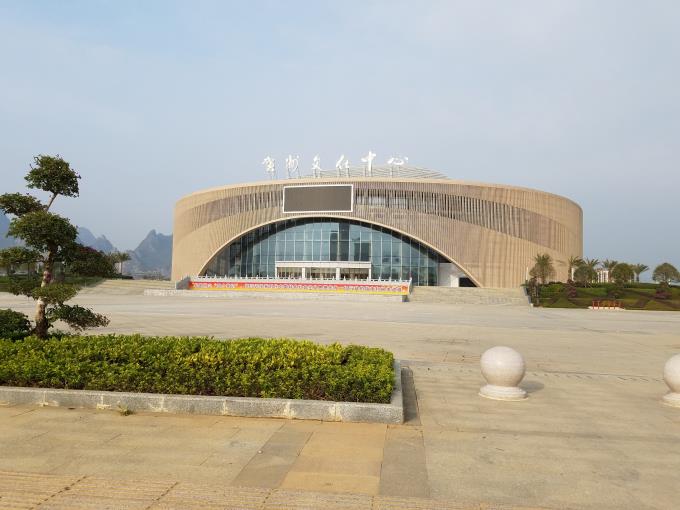 賀州市文化中心建設項目位于城東新區(qū)太白東路旁,整個建筑形體呈正圓形。項目開工時間為2012年2月3日,項目計劃總投資31300萬元,設計高度23.8m,總建筑面積33621㎡,占地117.7畝。建設內容為局部地下二層及地上五層建筑,內含1355個座位大劇院,影院、音樂廳、學術報告廳、會議室等8個功能廳,以及公共服務、車庫用房,室外臺座,290個車位生態(tài)停車場及綠化工程等。