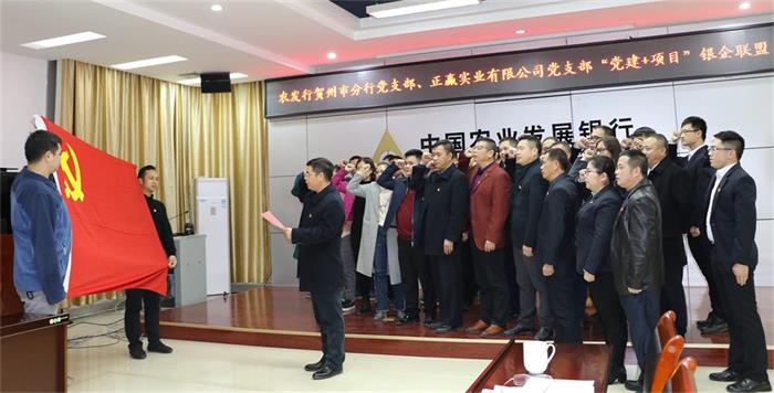 12月24日,廣西賀州市正贏實業投資開發有限公司黨支部和中國農業發展銀行廣西賀州分行機關黨支部在中國農業發展銀行廣西賀州分行舉行了“黨建+項目”銀企聯盟簽約儀式暨“貸動未來,共筑雙贏”主題活動。賀州市市長助理、農發行賀州市分行黨委書記、行長毛家才,賀州城投集團副總經理、實業公司黨支部書記、執行董事柳國忠等出席儀式。