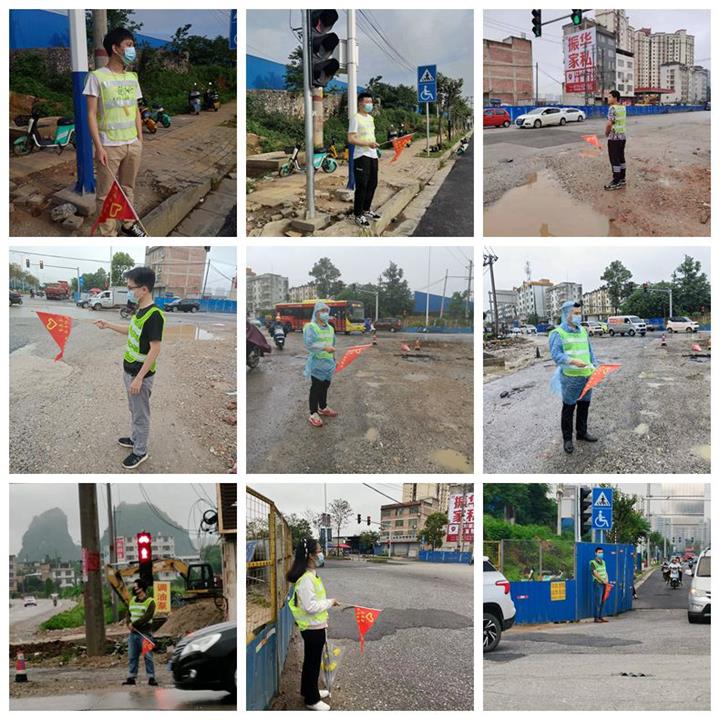 城投集團(tuán)的志愿服務(wù)崗位位于八達(dá)東路交桂粵湘大道紅綠燈路口(八達(dá)東路原糖廠路口),城投青年志愿者不怕困難,不懼風(fēng)雨,努力克服道路路況差、車流量大、下雨等不利因素,堅守志愿服務(wù)崗位,積極對車輛逆行、闖紅燈、不禮讓斑馬線和行人不走斑馬線、闖紅燈等一系列違法違規(guī)、不文明交通行為進(jìn)行勸導(dǎo),確保執(zhí)勤路口交通規(guī)范有序。