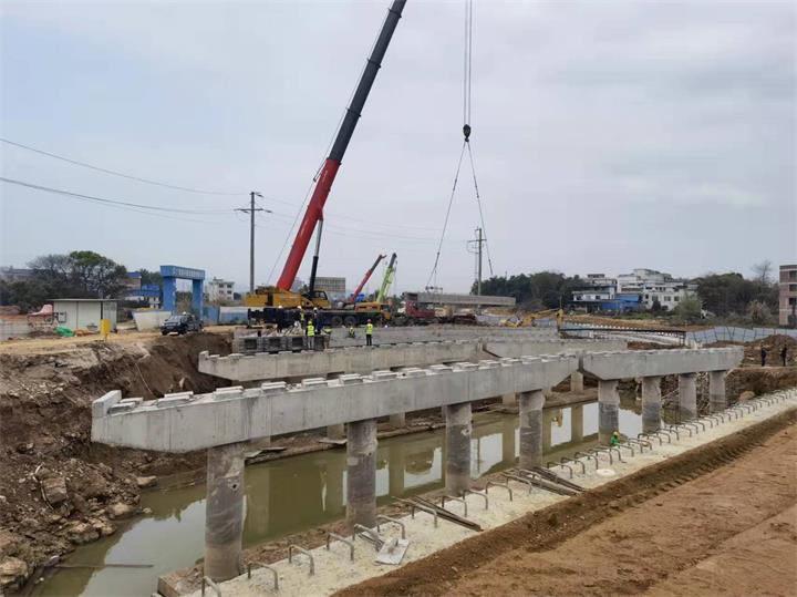 生態新城永康路育才河橋開展架梁施工2022-03-10